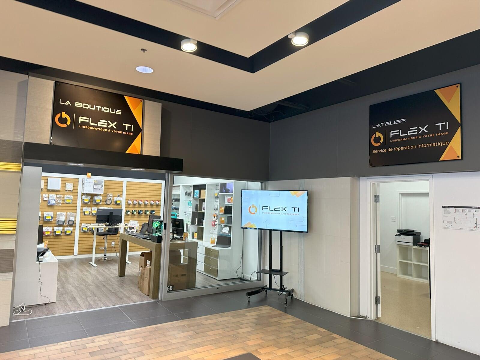 En plus de nos services TI pour entreprises, Flex TI c’est aussi une boutique à deux pas de chez vous. Vous y trouverez ordinateurs, périphériques, câbles et accessoires, avec un accompagnement personnalisé.